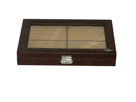 10 Pen Box, Cufflink Box, Ring Box Multipurpose Genuine Leather Glass Top # XL_10.PB+RB[G]